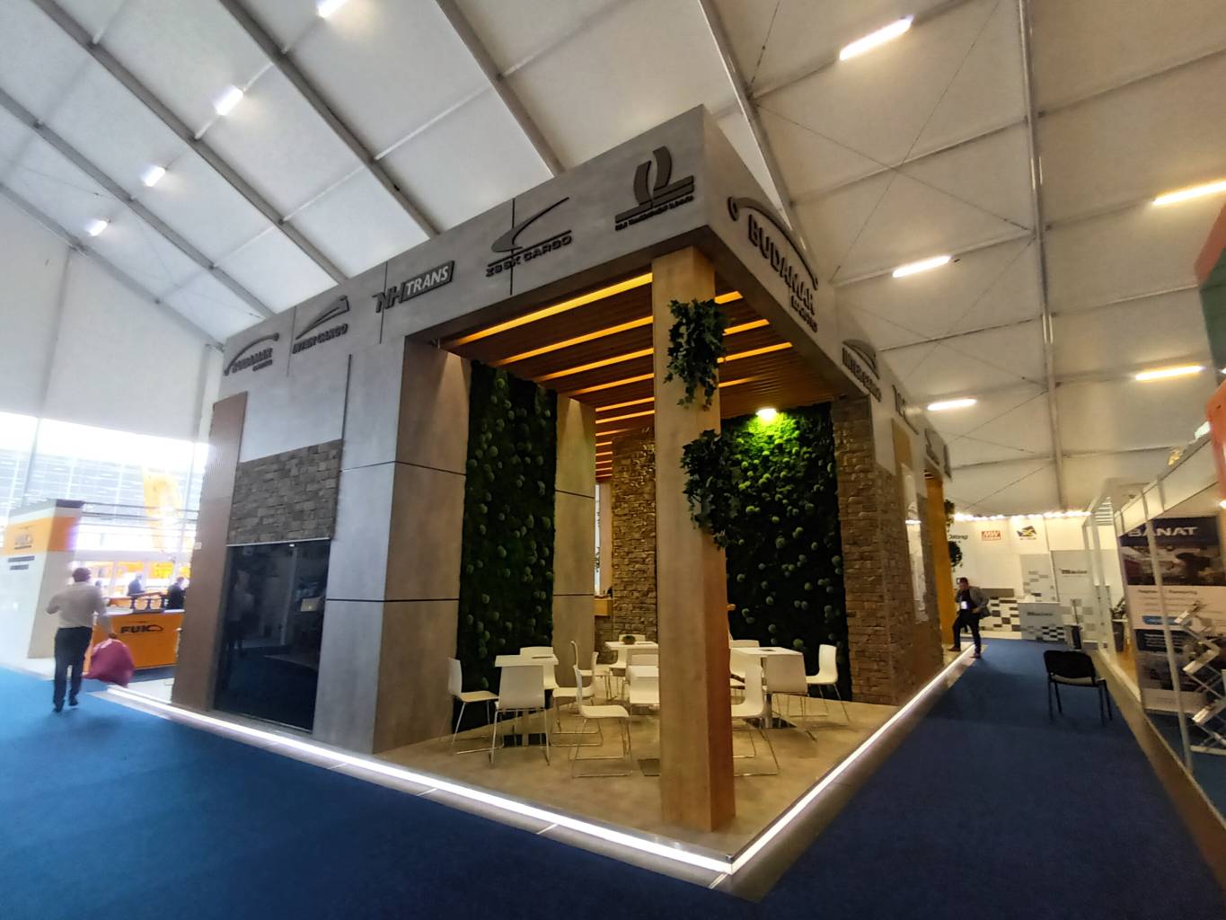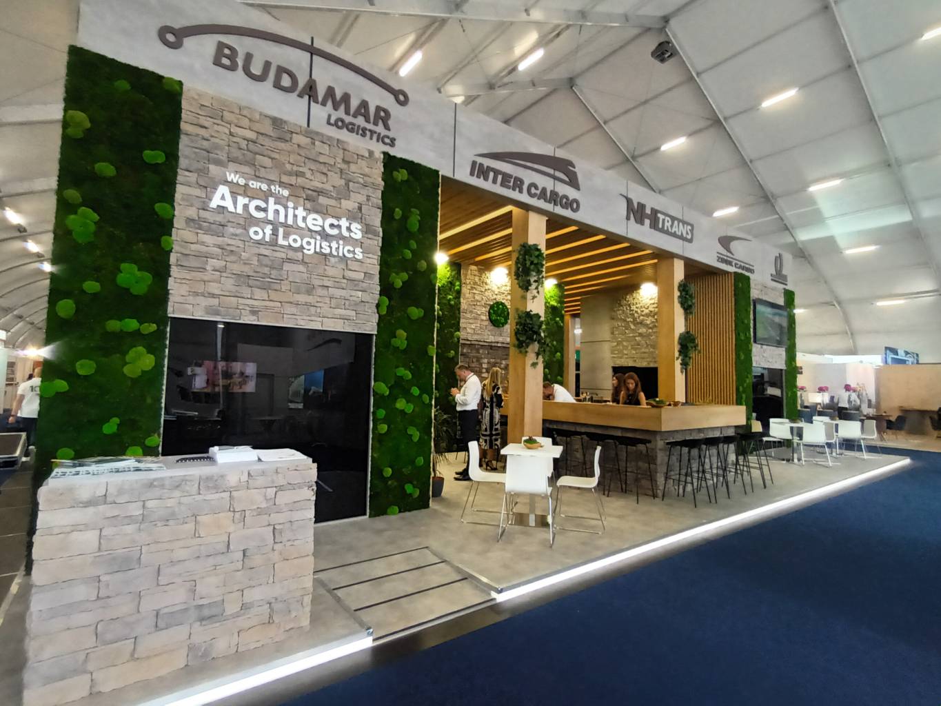 Wspólna wystawa NH – TRANS i BUDAMAR GROUP została zaprojektowana jako połączenie nowoczesnego stylu z naturą. Zgodnie z oczekiwaniami zapewniła tym samym przyjemną przestrzeń do spotkań i negocjacji biznesowych.